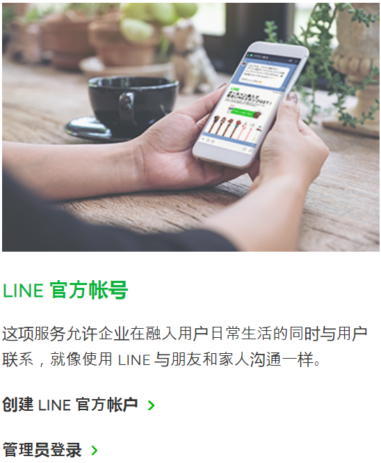 我们的服务有助于拉近企业和用户之间的距离,就像使用 LINE 与朋友和家人沟通一样,可以创建LINE官方账号与客户开展无障碍业务交流。